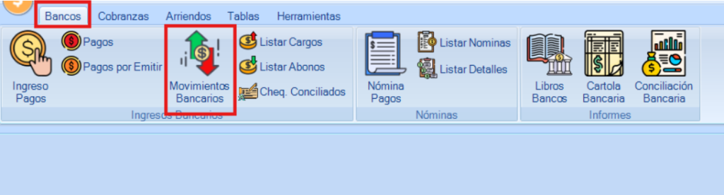 Una vez se habilite la ventana de Movimientos Bancarios, debe seleccionar: