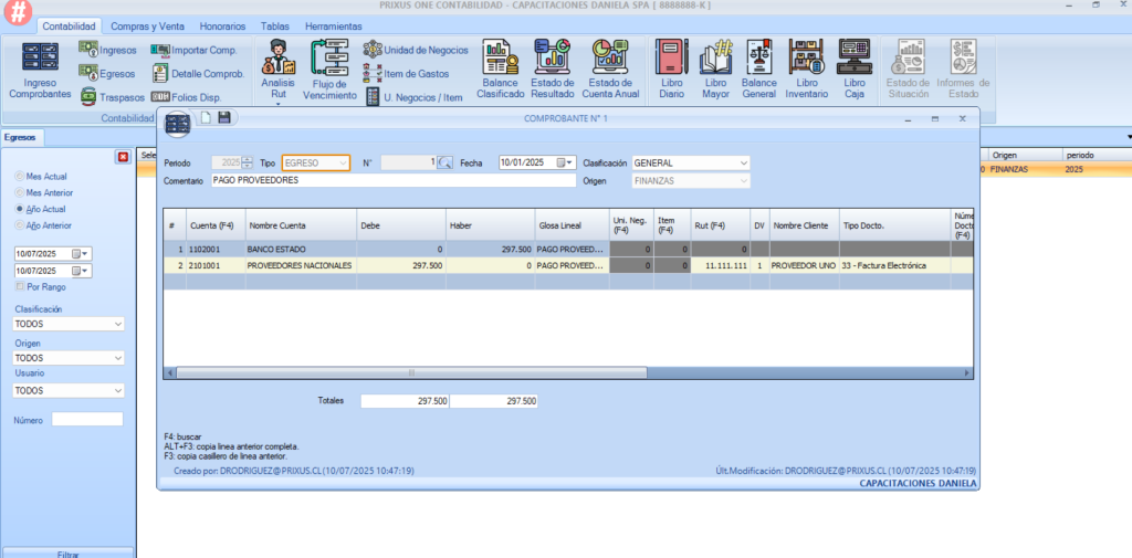 Y en el módulo de Contabilidad, en el icono Egresos, se verá el comprobante, y al ingresar, podrá visualizar la centralización.
