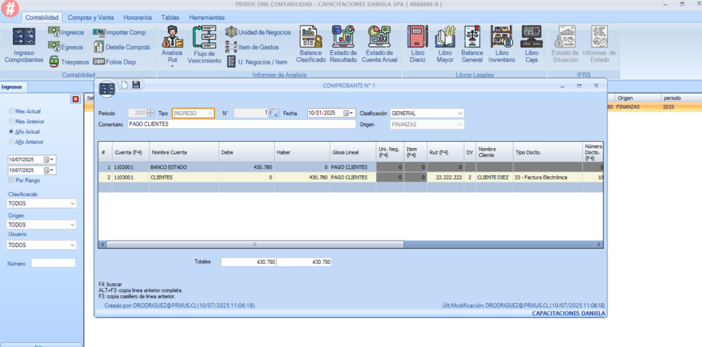 De esta manera, puede cargar los abonos y los cargos, manteniendo al día su Cartola Bancaria de Prixus, Movimientos Bancarios. Esto le permitirá contar con el informe de Conciliación Bancaria.