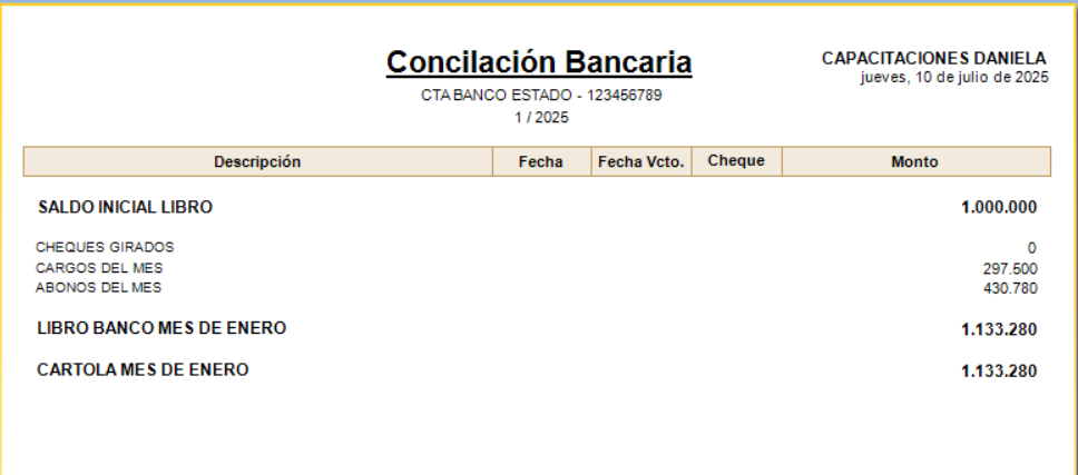 - Cheques: verá los movimientos bancarios asociados a cheques.