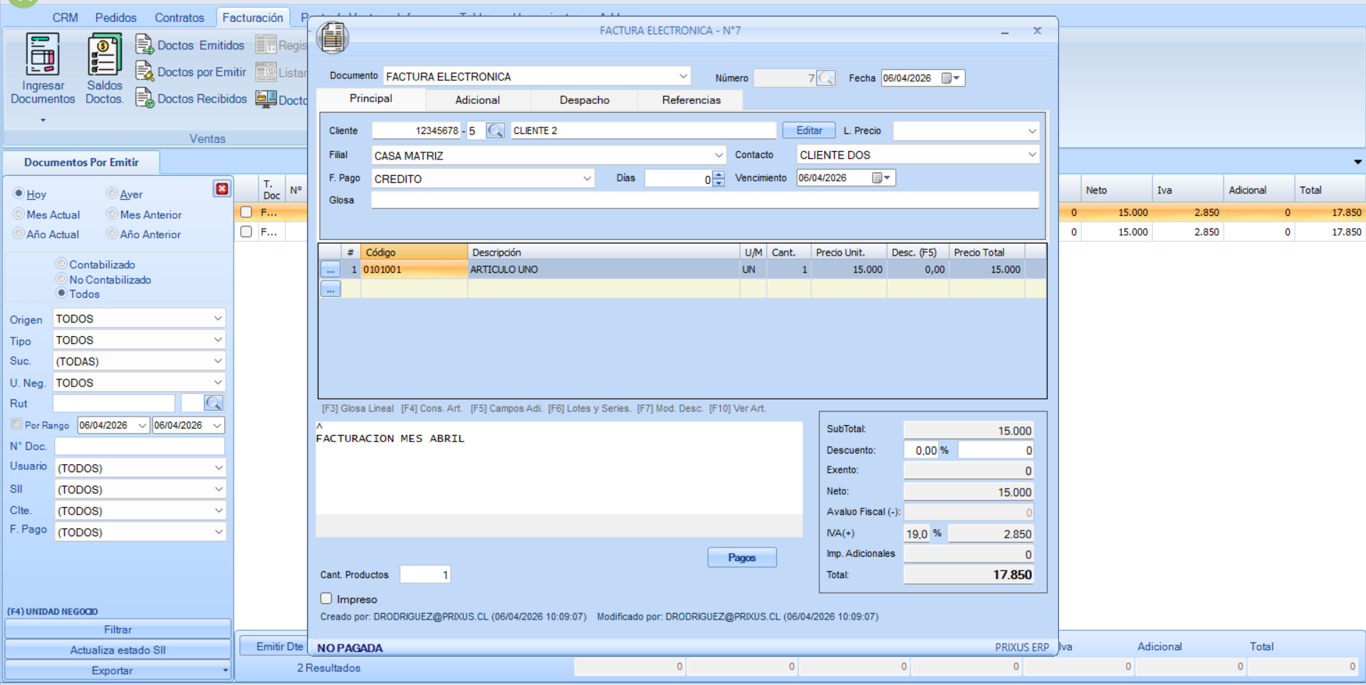 - la ventana de Facturación, icono Documentos por Emitir se podrá visualizar el documento generado antes de emitirlo.