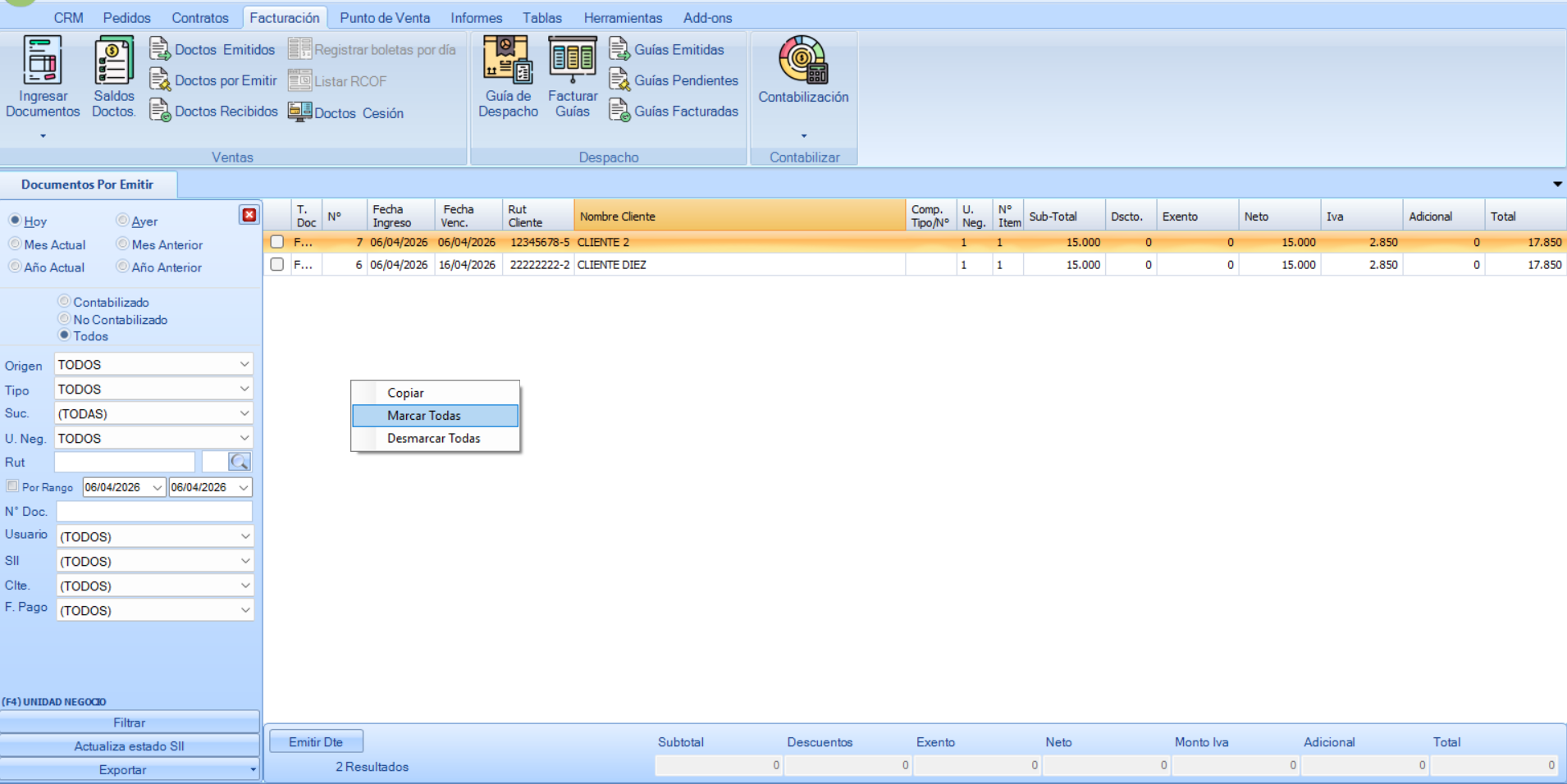 Una vez marcadas, ejecute la opción para generar las facturas.