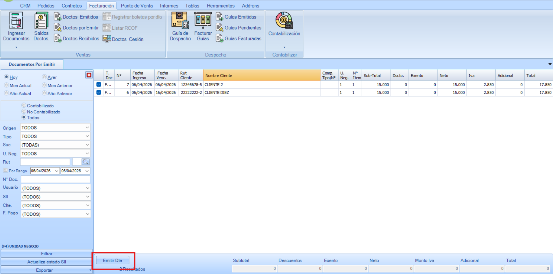 - Dentro de Documentos por emitir, seleccione las facturas que desea emitir.