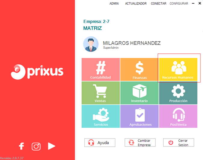 Para entrar el módulo, presione desde el menú de su empresa el recuadro de Recursos Humanos.