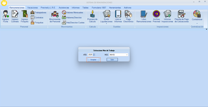 Siempre debe realizarse desde este icono, ya que, si cambia a un mes superior desde la ventana inicial al ingresar, el software se bloqueará y deberá comunicarse con el equipo de soporte para desbloquear el módulo. Puede ver mas detalles en nuestra pauta sobre como realizar cambio de mes.