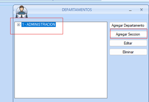 Ingrese en el icono “Departamentos”, el software trae por defecto Administración, usted puede crear los departamentos que necesite y a su vez puede dividirlos en secciones.