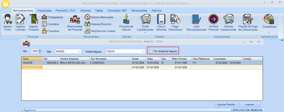 El casillero “Por Unidad de Negocio” le permitirá generar un archivo Excel por cada una de las unidades de negocio donde tenga trabajadores activos de forma simultánea.